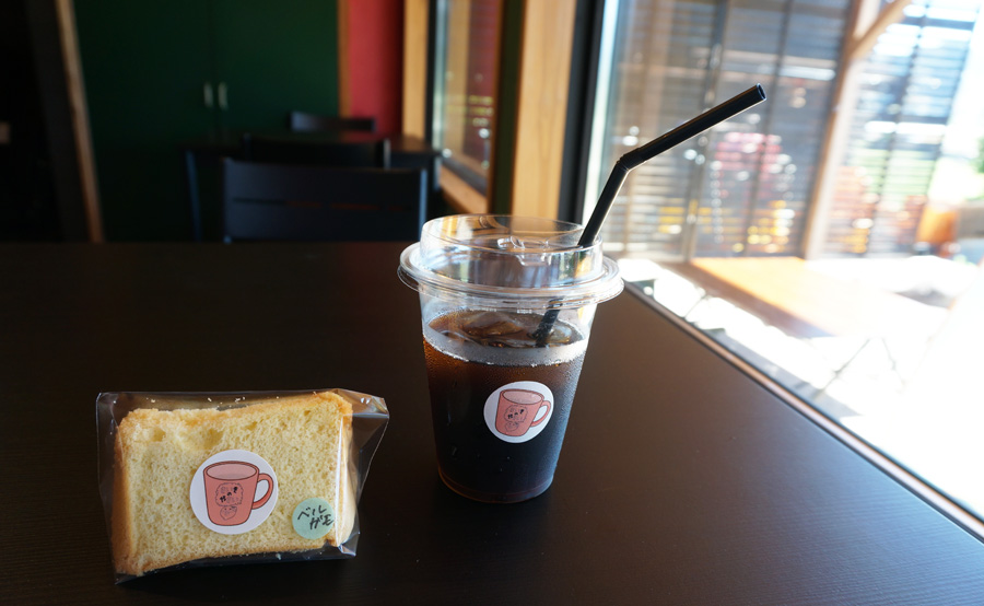 米粉を使ったシフォンケーキはさいきのやさいで作っていおり、コーヒーは山口県にお店がある「コーヒーボーイ」さんが焙煎してくれた豆を使って淹れてます。