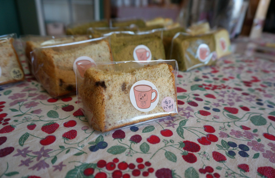 シフォンケーキはさいきのやさいの手作りで米粉で作られたホッとする甘さです。