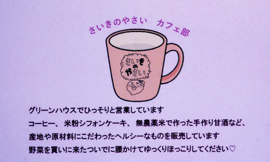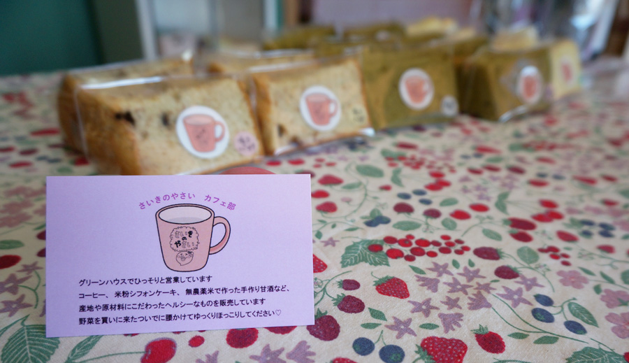 さいきのやさいでは毎週土曜日にさいき農園での現地販売会を行っており、そこに休憩スペース(カフェ部)も設けています。